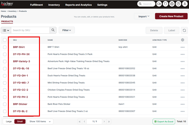 Any physical product intended to be received and managed in Badger’s warehouse, requires a corresponding SKU created in your Dashboard (including inserts, stickers, samples, packaging, marketing or project materials, components, etc.).