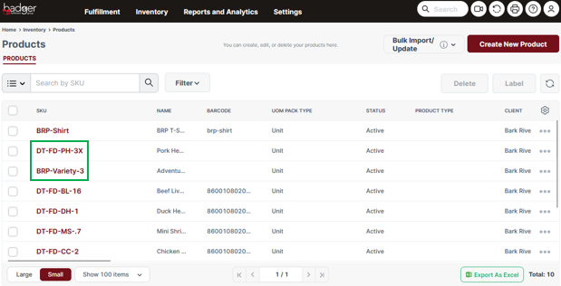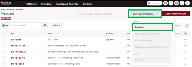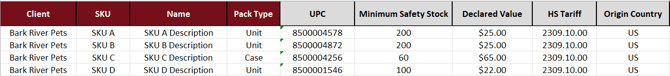 - Lastly, after any product import, double check the SKUs were properly created in the Products Dashboard. For any new SKUs included on the import file, pull up the "product page" and ensure the Product information is accurate (Primary UOM Pack Type, Custom Declarations, etc.).
