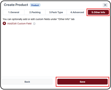 In the pop-up window:- Dropdown and select 'Pack Type*':