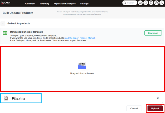 - Navigate to the respective 'Bulk Import/Update Products' page
