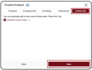 - Select 'Next', and then select 'Save' under the 'Other Info' tab.