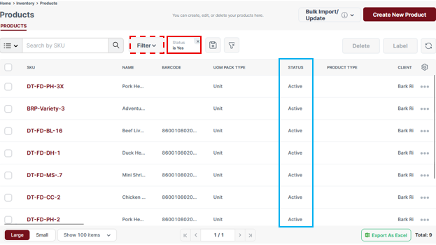 "Inactive" SKUs cannot be added to new Purchase Orders or Shipment Orders.