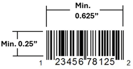 Absolute minimum barcode dimensions (at high resolution): .625" length x .25" height.