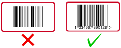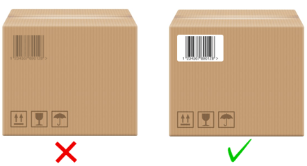 Barcodes must not be printed on material that easily crinkles or creases, hindering the barcode non-scannable (e.g. loose, thin bags or cellophane material); a barcode sticker should be applied.