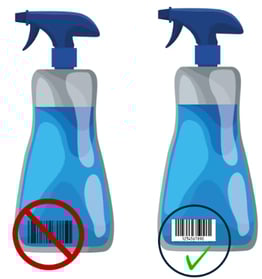 For barcodes printed directly on clear bottles, jars, bags or other clear materials, barcodes must be printed with a solid white background, as barcode may not effectively scan (otherwise, barcode stickers should be applied).