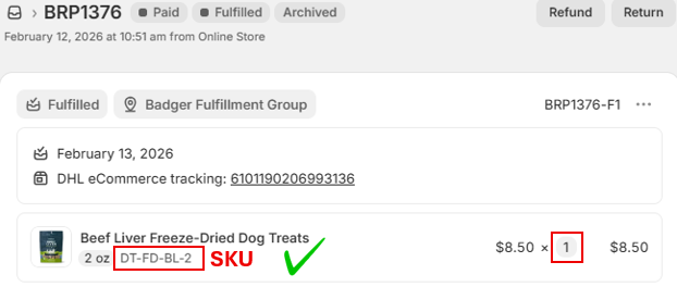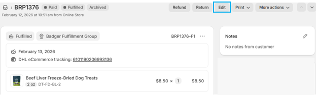 Any changes made in Shopify after this point—including assigning additional items to the Badger location—will not sync to the WMS under the original Shopify order number.
