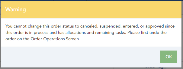 An order in any of the following operation statuses may not be modified: