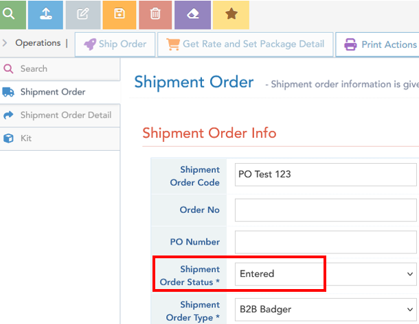 Shipment Order Status field is automatically updated and should only be changed by the customer when operation status allows, for the following actions: