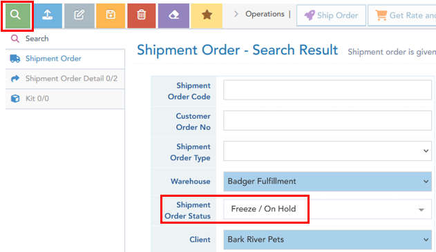 Logiwa Shipment Order Status will show: Freeze / On Hold. Search and filter orders by this order status in Shipment Order screen:
