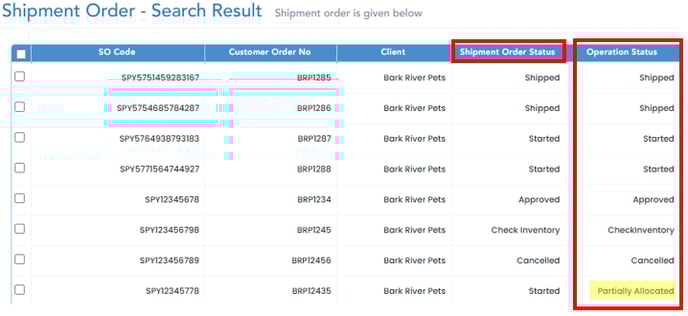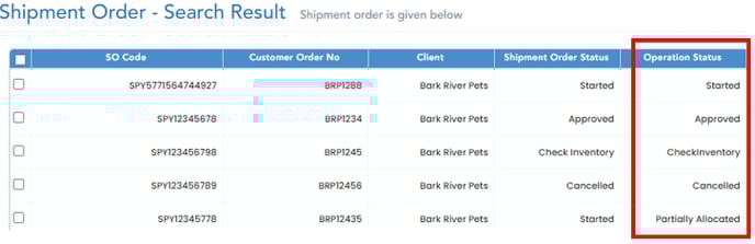 The 'Shipment Order Status' mimics 'Operation Status' for all statuses except "Partially Allocated". Operation Status is only viewable in Shipment Order search-result screen; 'Operation Status' is not editable.