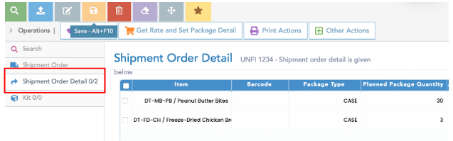 Enter the following Shipment Order Detail Info, and then hit the Save button (orange icon, upper left):